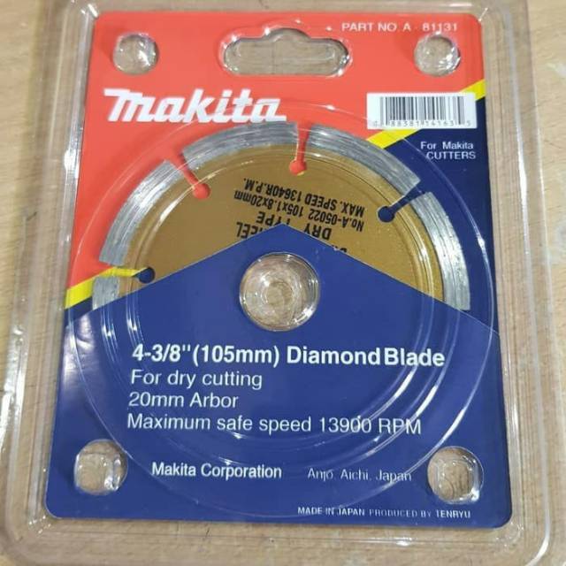 PISAU MATA POTONG KERAMIK KERING/ DIAMOND WHEEL DRY ▪Merk : MAKITA made japan▪Type : Kering ▪Packing : Press ▪Harga tertera adalah harga per 1 pcs ▪MAX Speed : 13460 R.pm▪Ukuran : 4" - 3/8FOR DRY CUTTING 20mm ARBOR105 x 1.8 x