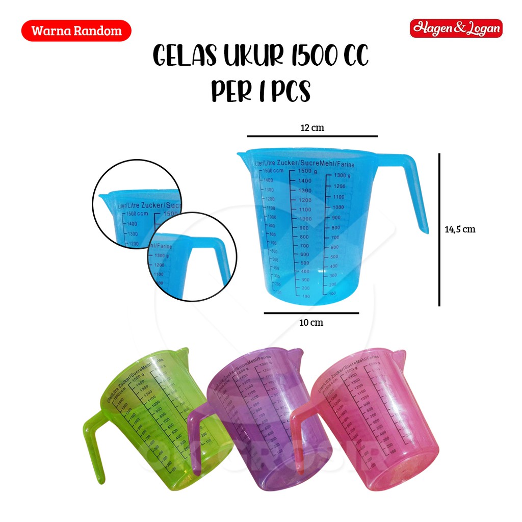 Grosir Perlengkapan di Kabupaten Lombok Timur Gelas Ukur / Gelas Takar 1500 Cc Warna Random [ Per 1 Pcs ] dari Hagen & Logan Kota Malang