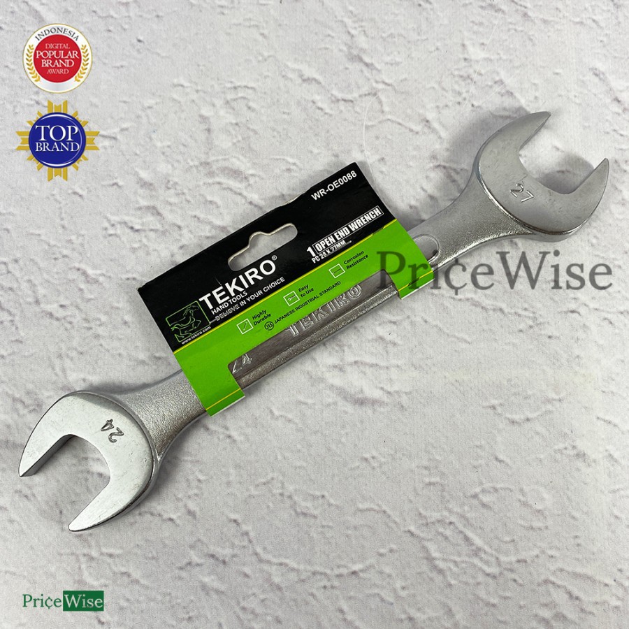 Merk: TekiroItem Code: WR-OE0088Ukuran: 24x27 mmBahan: Chrome Vanadium (CrV), sehingga produk mengkilat, kuat dan tahan karat.Dropped forged and heat treated for extra strengthSilver Matt Finish Raised panel type provides added strengthJIS (Japan Industry Standard)Barang dijamin original Te