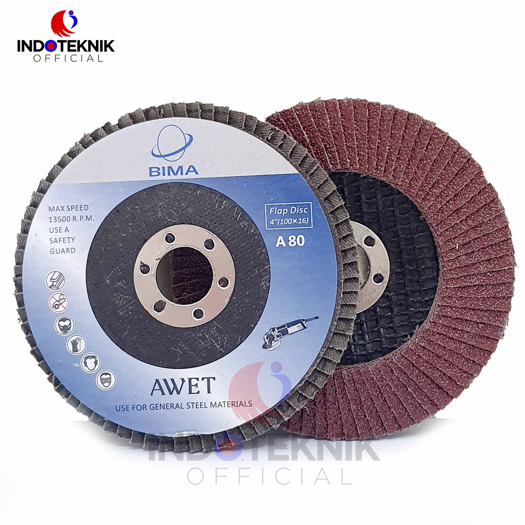 Flap Disc / Amplas SusunBrand : BimaNo : 80As Spindle : 16.0 mmMax RPM : 13.500 RPMFlap disc / Amplas susun digunakan di mesin gerindaHarga di atas untuk pembelian per satuan (PCS)Membeli Per BOX lebih Murah1 BOX = 200 PCSKebanyakan digunakan untuk mengamplas besi ataupun kayu. NB : Harap request ukuran sebelum checkout, jika tidak kami kirim r