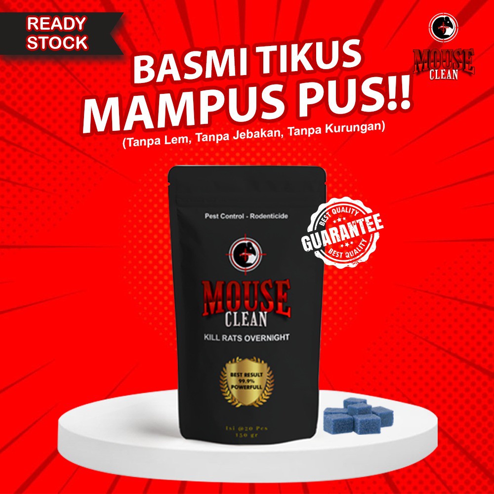 ISI 1 PACK SILVER 150 GramKemasan Cukup utk membasmi 1 Koloni. Bukan spt merk lain, kemasan kecil2 terlihat murah,tp Anda tetap harus membeli banyakMouse Clean adalah pembasmi tikus yang ampuh untuk segala jenis tikus!!!Siap digunakan tanpa perlu repot membuat atau dipasang pada perangkap.Sekali pemakaian pembasmi ini sangat ampuh untuk membasmi 30 tikus sekalipun.Mouse Clean dapat memusnahkan massal semua jenis tikus, seperti:- Tikus Rumah- Tikus Atap- Tikus Got- Tikus Semak- Tikus Sawah, DllMouse Clean 10X lebih hebat dari produk yang ada dipasaran!- Satu gigitan saja sudah bisa membuat tikus terkapar- Bahan Import, Tingkat keberhasilan 99%. Penggunaan sangat mudah- Biasanya tikus akan membawa ke sarang & menghabisi TIKUS LAIN- Mudah dicari, karena mati dekat sumber air ( kamar mandi/selokan )- Kematian ada jeda waktu sehingga tidak dicurigai tikus