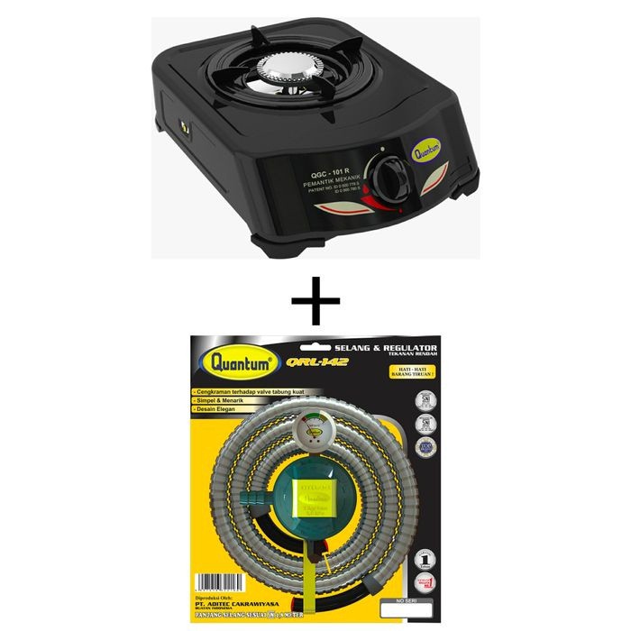 Deskripsi Paket Kompor Quantum 1 Tungku QGC 101 R dan Selang Regulator Gas 142LEBIH PRAKTIS, MURAH & HEMAT!Paket Kompor Gas Quantum QGC 101 R dan Selang Regulator QRL 142Kompor Gas Quantum QGC 101 R :Spesifikasi :- Jumlah Tungku 1 Stove- Nyala apinya sangat bagus- Harga ekonomis- Asupan Panas : 1,61 KW, Efisiensi : 68,3 %, Burner Stainless Steel : 80- Body Deep Drawing Powder Black- Sistem penyalaan mekanik- Garansi resmi Quantum 1 tahun.Selang Regulator Gas Quantum QRL 142.Panjang selang 1,8 meter (standart SNI)Petunjuk pemakaian gasSelang anti tikus, dilindungi oleh Metal CoverBonus 2 buah klem selang.Catatan TokoKebijakan Pengembalian ProdukApabila Barang yg diterima dalam keadaan Rusak disaat perjalanan ataupun Rusak disaat dipakai baru satu hari, kami akan bertanggung jawab dengan Syarat : Barang tersebut dalam keadaan tidak ada bekas pakai & Lecet, kardus dalam keadaan bagus & Tidak Rusak, Garansi TOKO 1 Hari setelah penerimaan barangKami tidak menerima Retur barang untuk kesalahan pesan barang, ataupun Salah pilih warna (harap menuliskan note saat buat invoice untuk pilihan warna, kami tidak menerima konfirmasi warna melalui CHAT INBOX)Apabila Barang ingin ditukar dgn yg baru, barang Retur harus dikembalikan terlebih dahulu ke pihak penjual, setelah barang diterima penjual & Diinvestigasi, baru akan kami kirim kembaliKami berhak memilih jenis ekspedisi apa yg kami gunakan untuk pengembalian BarangKirimlah barang Retur ke Penjual di Tanggal & Waktu Operasional