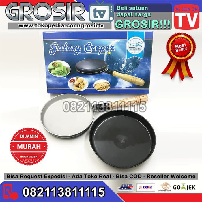 Stay Store ProdukGALAXY CREPER - CETAKAN KUE KULIT DADAR GULUNG MARTABAK LUMPIA RISOLWajan ini sangat cocok utk membuat kue yg banyak variasi hanya dengan menggunakan satu wajan ini, udah cepet, simple & praktis looohWajan ini bisa memvariasikan aneka kulit kue seperti utkMartabak TelorLumpiaRisolesKue Darling - Darlung (Dadar Gulung Dadar Guling)Crepes kayak yg dijual di mall. Nah kue nya jadi banyak macem nya kaan ??* Bahan : Aluminium dilapisi teflon Berkulitas yg tidak mudah terkelupas* Dilengkapi dengan wadah plastik untuk menaruh adonan,* Ringan* Mudah dibersihkan* Diameter lingkaran : 21 cmTAMBAH DUS+BUBLE PADA BELANJA ANDA AGAR PAKETAN LEBIH RAPI&AMAN,BUKA LINK:BACA ATURAN GROSIR TV sudah membeli berarti setuju khusus yang belanja langsung keREAL kami, dijakarta pusat. minimal belanja 2juta pilih sampai puasssyang memberikan bintang 5 , kami doakan semoga rezekinya lancar, selalu bahagia dan selalu sehat. amin :)Terima kasih telah berbelanja di tempat