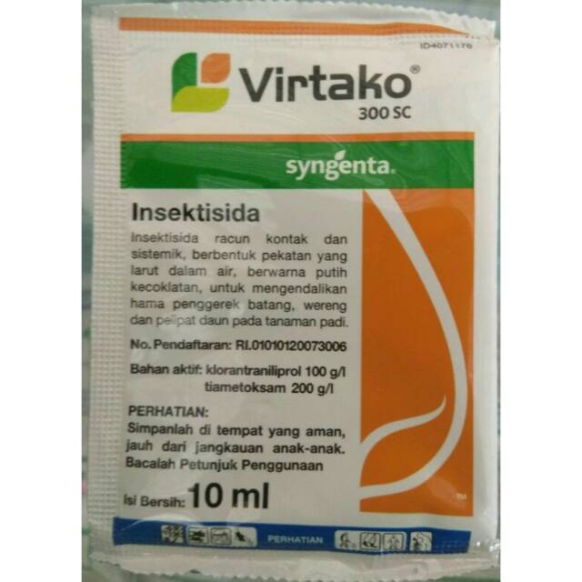 Bahan aktif: Klorantraniliprol 100g/l + tiametoksam 200g/lFormulasi: Selluloid Concentrate (SC) 1. Bawang merah : ulat grayak Spodotera exigua (Penyemprotan volume tinggi : 0,4 ml/l) 2. Cabai : ulat grayak Spodoptera litura (Penyemprotan volume tinggi : 0,15 ml/l) 3. Padi sawah di pesemaian : penggerek batang Scirpophaga incertulas (Penyemprotan volume tinggi : 100 - 150 ml/ha) 4. Padi: wereng coklat Nilaparvata lugens (Penyemprotan volume tinggi : 200 ml/ha) 5. Padi: hama putih palsu Cnaphalocrosis medinalis penggerek batang Scirpophaga incertulas (Penyemprotan volume tinggi: 112,5 ml/ha)TerimakasihSalam sub