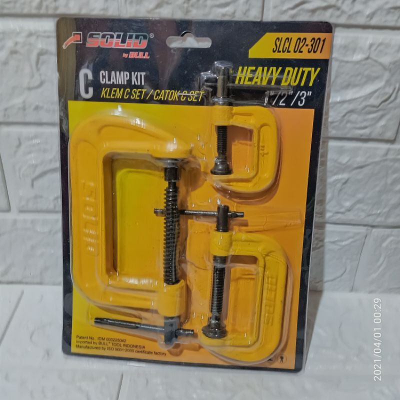 Ready klem solid c setmerk SOLID- klem set ukuran 1”, 2”, 3”Biasa di gunakan untuk menjepit barang seperti besi/papan/kayu/triplek supaya Tdk bergeser atau berg