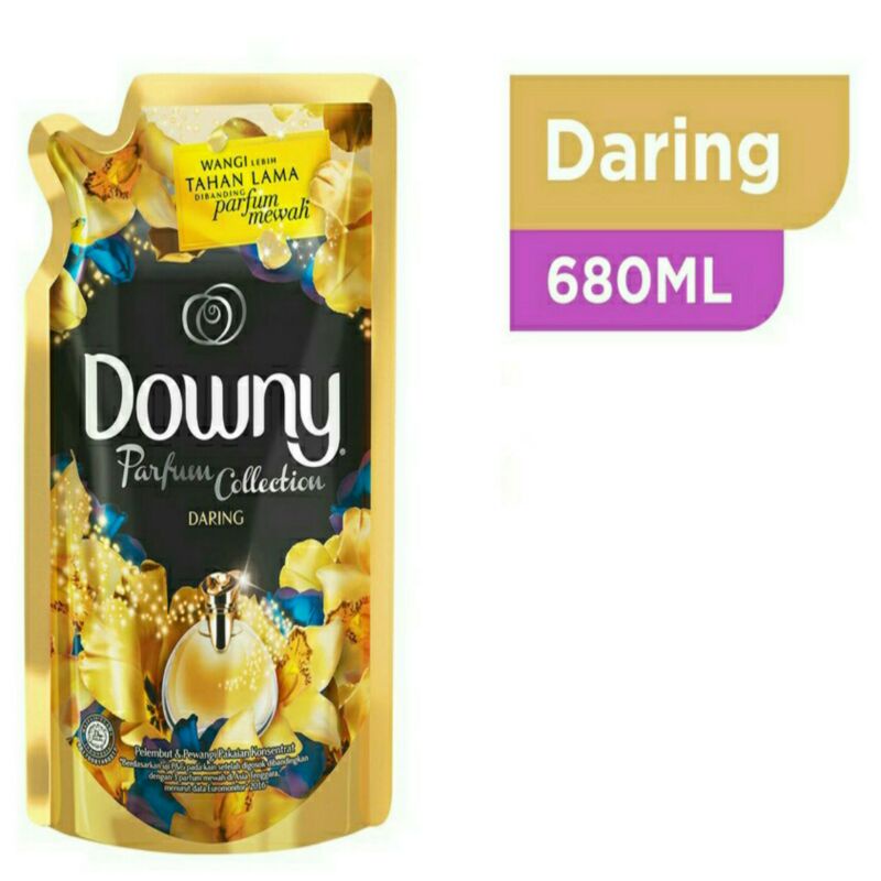 Deskripsi Downy Daring Pelembut Pakaian Refill 720ml Pelembut dan pewangi pakaian Lebih tahan lama dibanding parfum mewah* Produk konsentrat dengan kandungan parfum tertinggi dari Downy Parfum Collection Membuat Anda selalu wangi sepanjang hari seperti menggunakan parfum dalam kondisi apapun (panas, angin, hujan) Detail produk dari Downy Parfum Collection Daring Nikmati keharuman lebih tahan lama dibanding parfum mewah dari Downy Parfum Collection*. Dengan kandungan konsentrasi parfum tertinggi, produk terbaik dari Downy Parfum Collection. Manjakan keluarga Anda dengan keharuman dari Downy. Wangi Parfum Tahan Lama Pelembut pakaian Downy Daring hadir dengan aroma parfum tahan lama dari aroma bunga Gardenia, mimosa, madu, disempurnakan dengan wangi buah persik dan vanilla. Kandungan kapsul mikro-parfum-nya dapat melepaskan aroma parfum perlahan. Kadar konsentrasi parfum tertinggi dari Downy Parfum Collection membuat wanginya bertahan walau terkena angin, panas, maupun hujan. Petunjuk Pemakaian Bila Anda mencuci pakaian tanpa mesin cuci, gunakan Downy Parfum Collection Daring pada saat bilasan akhir, tuangkan 1/2 ukuran tutup Downy, kemudian bilas dan keringkan. Untuk penggunaan dengan mesin cuci, tuangkan 1 ukuran tutup penuh Downy ke dalam mesin cuci. Untuk mendapatkan hasil terbaik, pakaian atau celana dengan bahan seperti jeans, selimut, atau handuk, Anda cukup menuangkan 1 ukuran tutup