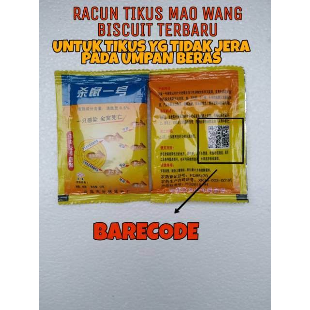 JAMINAN ORIGINAL 1000%COCOK UNTUK TIKUS YANG JERA UMPAN BERASRACUN TIKUS MAO WANG Original BELI BANYAK LEBIH MURAH.. HARGA RESELLER. Adalah Umpan Racun Tikus Siap Pakai Produksi China Berbentuk BISKUIT lembut Yang Sangat Ampuh Untuk Membunuh Hama Tikus Dalam Waktu Kurang Dari 1 Menit Setelah Termakan Oleh TikusCara Pemakaian :Dengan Cara taruh racun MAO WANG baru ditempat yang Sering Dilalui Tikus Tanpa Perlu Dicampur Dengan Umpan Tambahan. Sediakan Piring Atau Mangkuk Bekas Berisi Air Di Samping Mao Wang, Karena Tikus Akan Langsung Mencari Air Apabila Merasa Keracunan. pindahkan piring berisi racun Mao Wang, jika sudah lama tidak ada Tikus yg makan lagi.Keistimewaan racun MAO WANG :Tikus Akan Langsung MATI dan KERING Di Tempat.Sehingga Anda Tidak Perlu Lagi Merasa Takut Tikus Akan Mati Di Sembarang Tempat Tersembunyi Dengan Menebar Bau Busuk Yang Sangat MenggangguDijamin 100% Terbukti dan AmpuhNB : Jauhkan dari jangkauan anak anak & binatang peliharaanDI JAMIN ORIGINAL 100%HARGA PER 1 PCS #maowang #pembasmitikus #racuntikus #racuntikusampuh #racuntikusma