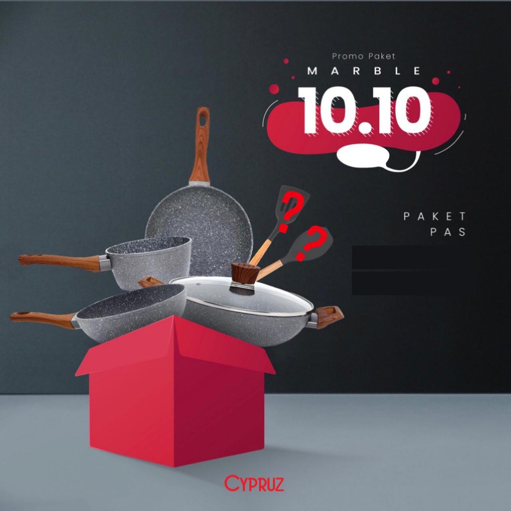 Harga beli satuan Rp 1.386.000 DISKON JADI Rp936.000Satu set terdiri dari:Fry Pan 18cmsauce pan 16cmKuali Marble 30cm + TutupFry wok 20cmsutil random (warna random)sutil random (warna random)-Gagang motif kayu soft touch, tidak licin, dan enak dipegang-Anti lengket, masak tanpa minyak-Lapisan anti lengket dan anti kanker, PFOA dan PTFE free-Panci tebal 3mm, tidak akan kelupas-Bisa dipakai di semua jenis kompor, termasuk ind