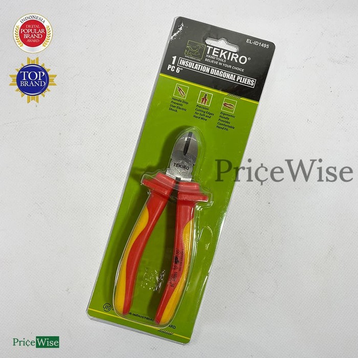 Merk: TekiroItem Code: EL-ID1495Ukuran: 6 inchInsulated to VDE Standards 1000V CertifiedChrome Vanadium Alloy SteelTPR Insulated HandleGagang mencegah pengguna tersetrum/tersengat listrikKepala untuk potong kabel lembut dan kerasGagang nyaman dan ergonomisJIS (Japan Industry Standard)Barang dijamin original Te