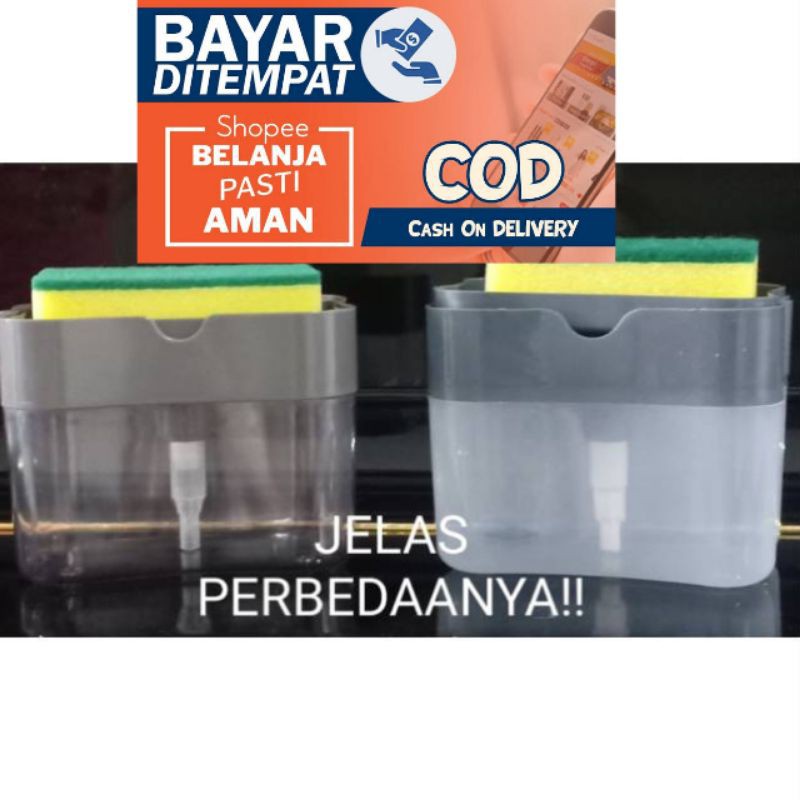 Dispenser Sabun Cuci Piring 2 in 1 ORIGINAL!!!!size : P13,5 X L10 X T 10.5CMBahan : Plastik isi kemasan- 1x Dispenser Sabun- 1 x SpongePengeluaran yang tepat, mudah & kapasitas besar mengeluarkan sabun sejumlah yang sempurna ke spons, sangat mudah digunakan. Wadah ini memiliki kapasitas 13 ons sehingga Anda tidak perlu sering mengisinya. Bekerja dengan semua jenis sabun cair.Menghemat uang, ruang dan waktu, Dispenser pencuci piring ini benar-benar akan mengubah kehidupan dapur Anda, dirancang untuk mencuci piring lebih cepat, operasi instan akan menghemat waktu Anda dan 1 pengendalian tangan akan menjaga tingkat energi Anda selalu tinggi. Ide hadiah bagus untuk teman Anda atau keluarga.Perbedaan Dispenser:Dispenser jelas terlihat bening dan putih susu(tdk bening)!!!!ORIGINAL ....berbeda dengan yg dipasaran. Tutup dan body nya menempel dengan baikMEMBELI= SETUJU NO COMPLAIN, NO RE