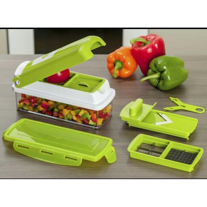 Nicher Disher merupakan alat pemotong makanan berkualitas yang menggunakan material yang terjamin. Beragam ukuran ketebalan makanan yang dipotong bukan menjadi masalah lagi, dengan Nicher Disher segalanya menjadi lebih mudah. Alat ini berguna untuk memotong atau mencacah dan tidak membuat Anda menangis saat memotong bawang.Fitur:- Pisau stainless steel- 11 pilihan potongan- Memotong dengan cepat- Mekanisme sederhana- Wadah transparan- Kapasitas 1.500ML- Mudah dibersihkan- Aman digunakan karena tangan tidak menyentuh pisau saat pemotonganIsi Paket Penjualan:- 1 Buah cutting-top with integrated pin grid- 1 Buah cutting-base- 1 Buah transparent collector (capacity 1,500 ml)- 1 Buah Cover for holding a fresh collection container- A blade assembly (6 mm x 6 mm or 12 mm x 12 mm)- A blade assembly (6 mm x 36 mm or 18 mm x 18 mm)- 1 Buah knife used for quarters or eighths- 1 Buah plug-cutting punch for eighths- 1 Buah part-cover for all blade inserts- 1 Buah professional peelerProduk non Garansi no retur Kami kirimkan produk dalam keadaan baik dan safety packing jadi jika ada barang pecah atau rusak Dalam Pengiriman itu diluar tanggung jawab kami #nicerdicer #pemotongbuah #pemotongsayur #alatpoton