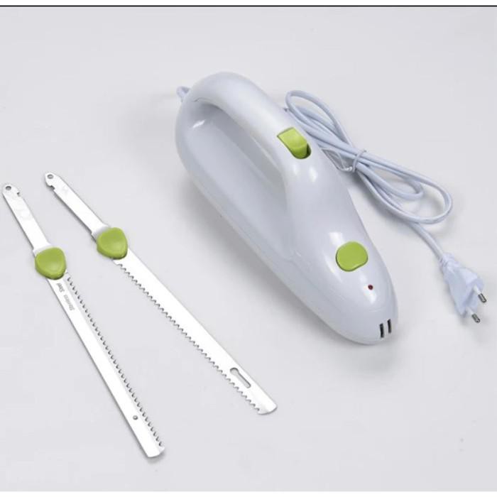 selamat datang di toko kami Ketuo Electric Knife Bread / Pisau Pemotong Roti Tawar ElektrikFeatures:1. Made of stainless steel double blades, hard and anti-abrasion. ABS body material, durable and long lasting.2. Safe double switch, work at the same time according to the handle inside the safety switch to work properly.3. Brand new blade design, super sharp, high efficient and convenient.4. Easy to operate and install, install the blade, plug in, open the switch, grasp the handle, press the switch button and normal start.5. Removable blade and machine body, easy to clean. Suitable for cut bread, frozen meat, ham and other food.Specification:Condition:100% Brand NewMaterial: ABS+Stainless steelColor: As Pictures ShownVoltage: 220-240V/50-60HZPower: 110WPlug Type: EU PlugSize: approx.27.5*8*14cm/10.8*3.1*5.5inWeight: Approx.922g/32.5ozPackage list:1 * Electric Bread Knife1 * Blade semoga berlang