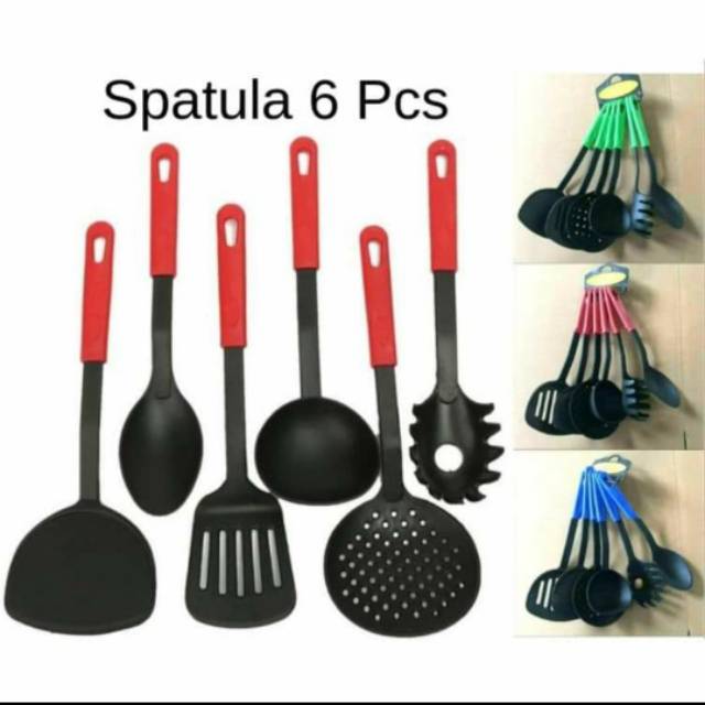 bahan:-Plastik tebal-Tahan panas-Bebas BPA(bahan penyebab kanker)Terdiri dari:-1pcs sendok makan nasi-1pcs saringan-1pcs sendok sup-1pcs turner pancake-1pcs slotted turner-1pcs powder steak100% bahan nylon food grade long servicebisa tahan dalam suhu 240 derajat suhu rendah 40derajatWarna yang cemerlang mudah dibersihkan,tidak lengketSetiap alat memiliki lubang dipegangan untuk memudahkan mengga